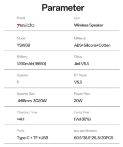 Unlike standard portable speakers, the YSW39 offers powerful 20W output and multiple playback options in a sleek, modern form. The combination of strong bass, RGB visuals, and Bluetooth 5.3 stability makes it a reliable and stylish choice for all types of music and media.